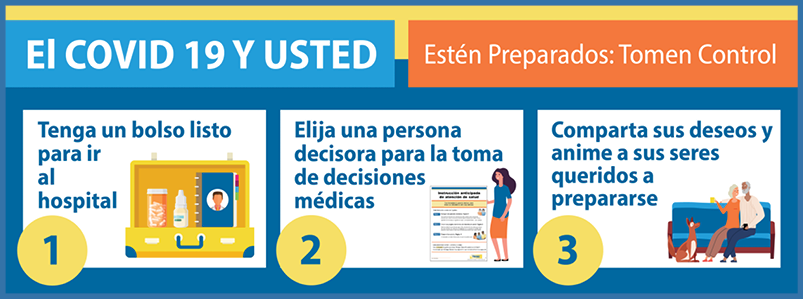 Esta hoja de consejos incluye información sobre la planificación anticipada de la atención y la planificación de medicamentos, mascotas, facturas y una posible estadía en el hospital.